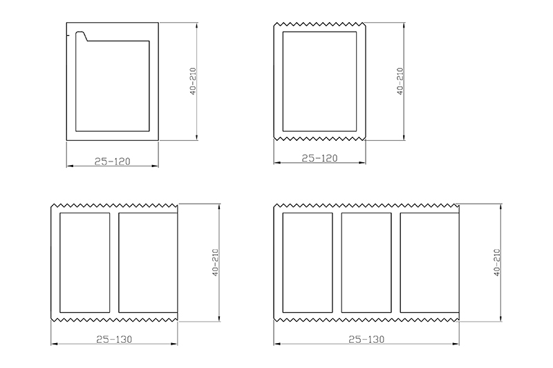 橫封輥筒分割數(shù)為: 2分割時120-210mm 3分割時80-150mm 4分割時60-120mm 6分割時40-75mm ※根據(jù)橫封寬度袋長可變范圍不同。 |